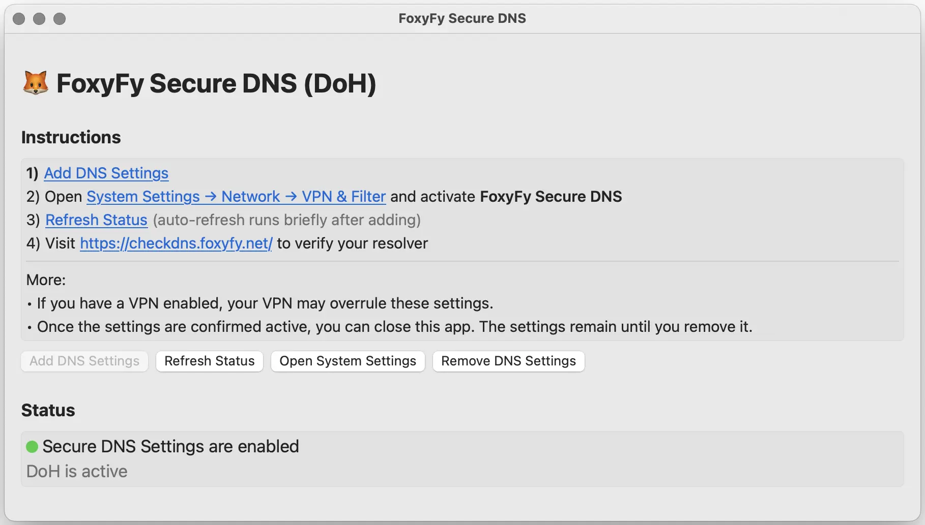 - 🍏 MacOS – Secure DNS App (DoH): Download from App Store and follow the instructions.